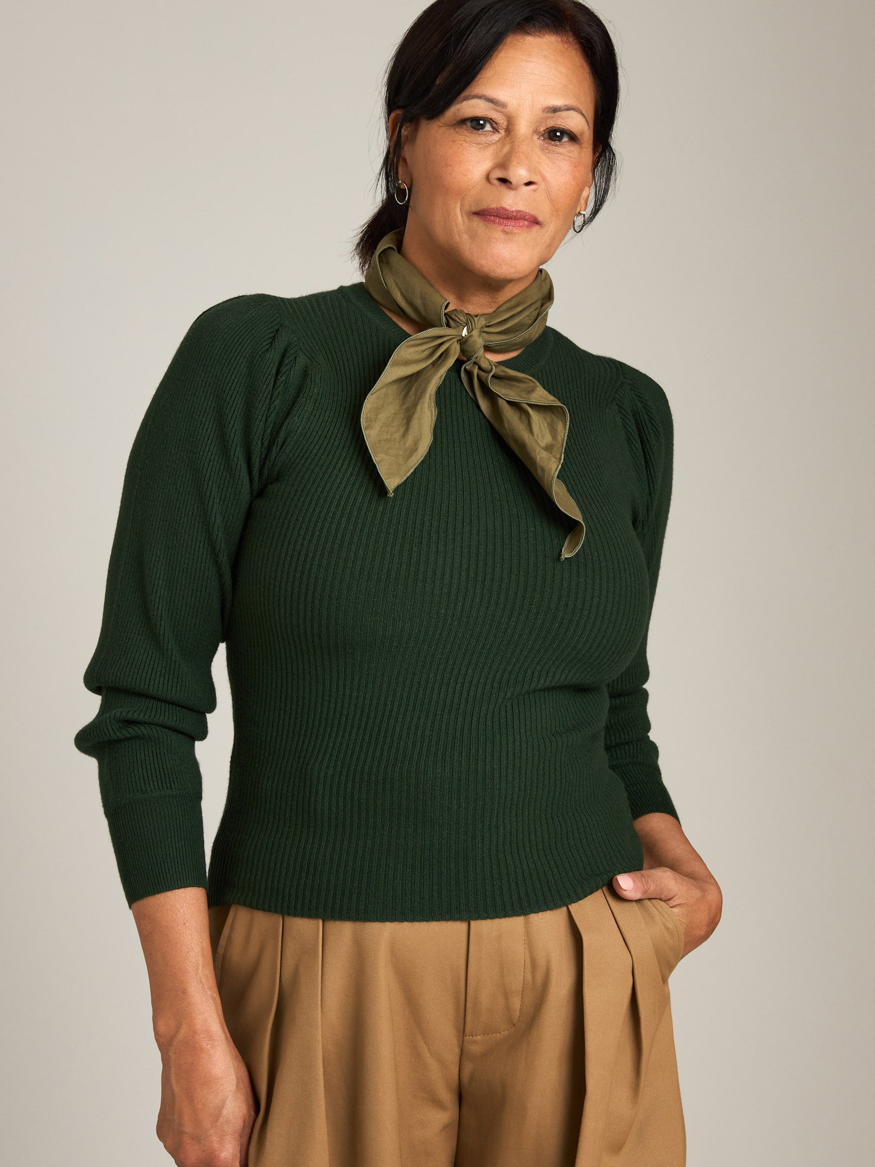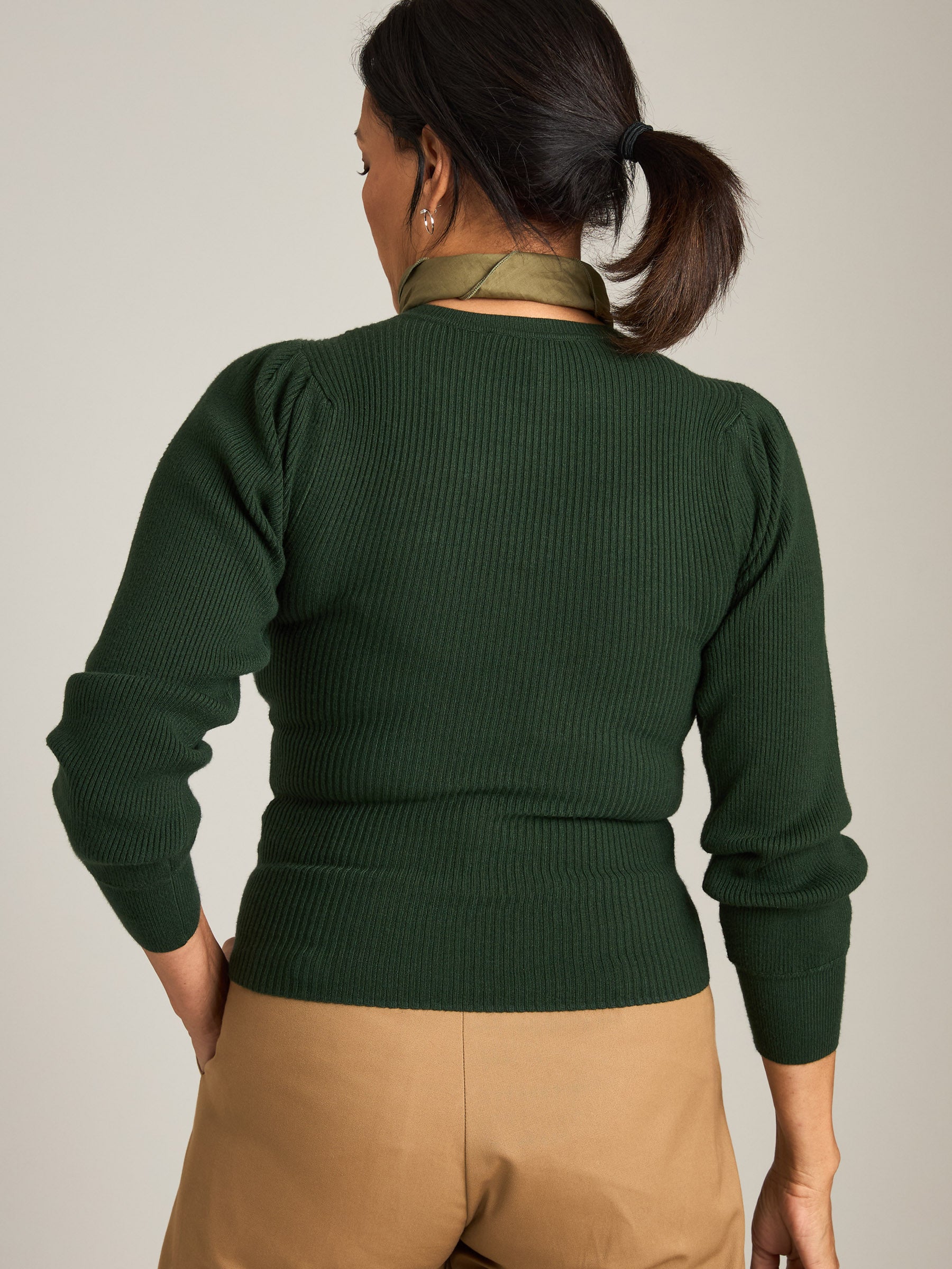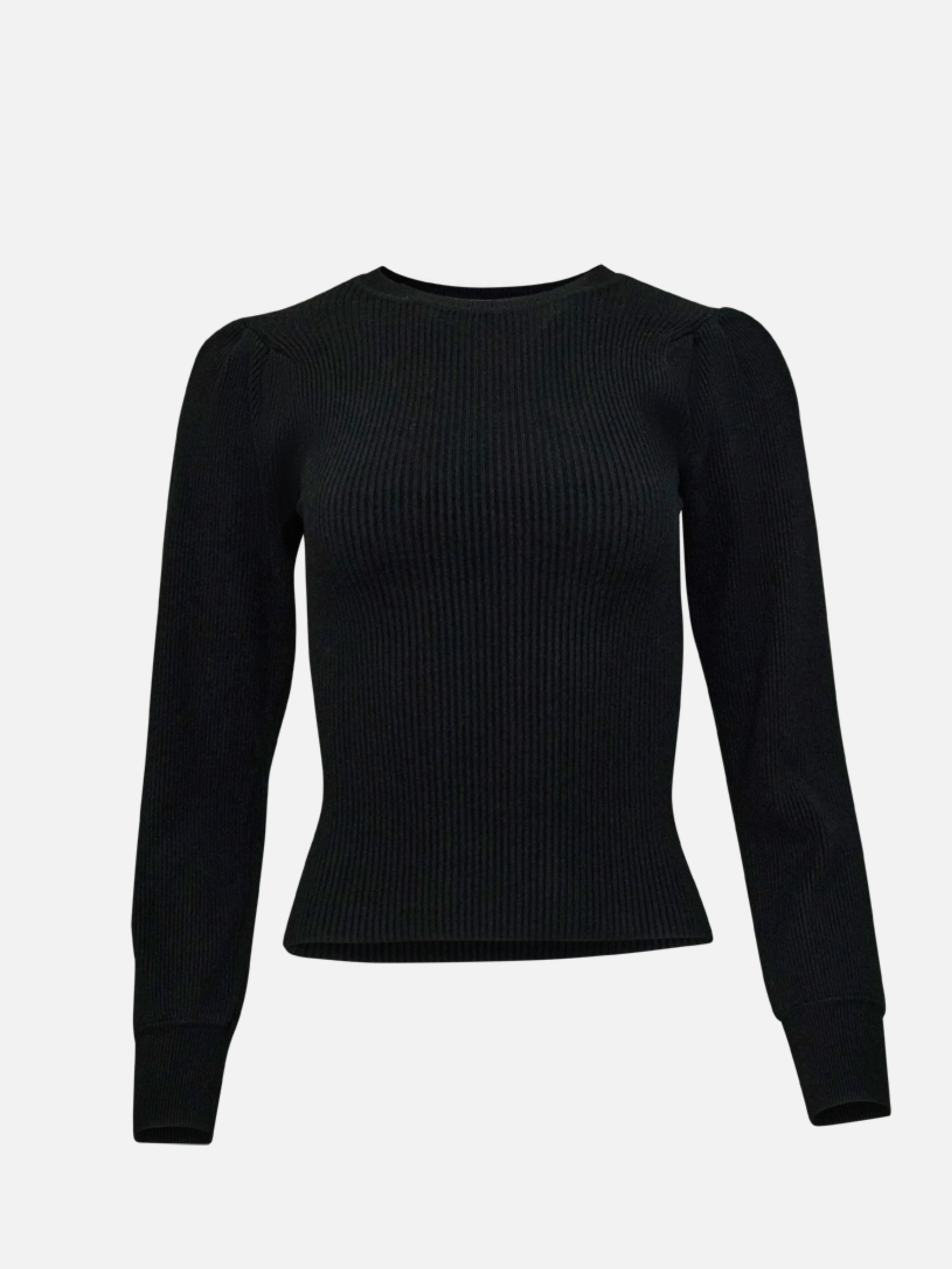Crafted with a fine rib-knit textile, the Monk & Lou Jolie Puff Sleeve Pullover Sweater offers softness and comfort with added shape for a different take on the classic crewneck. Integrated stretch ensures a close fit for a sleek silhouette through the body.