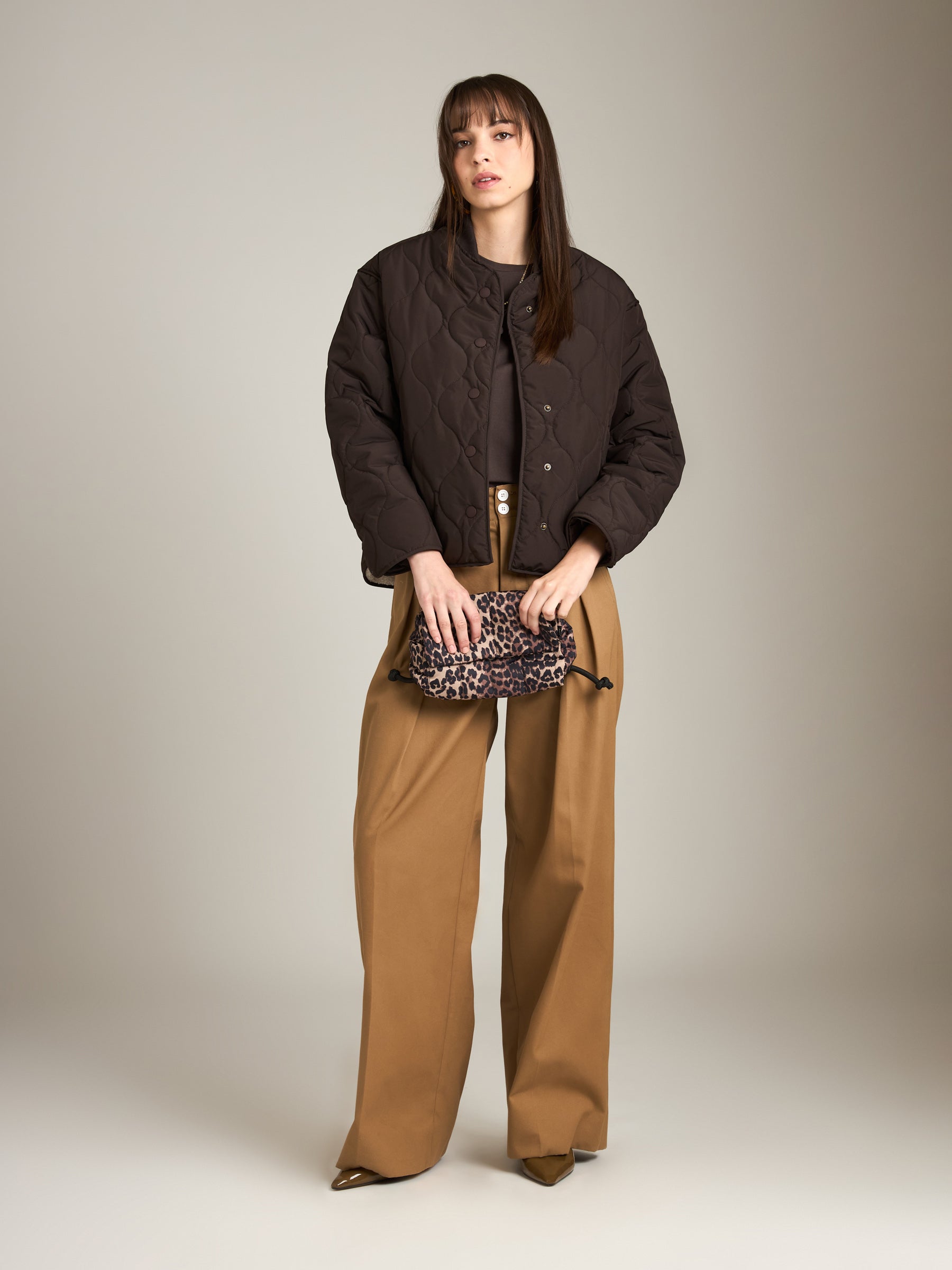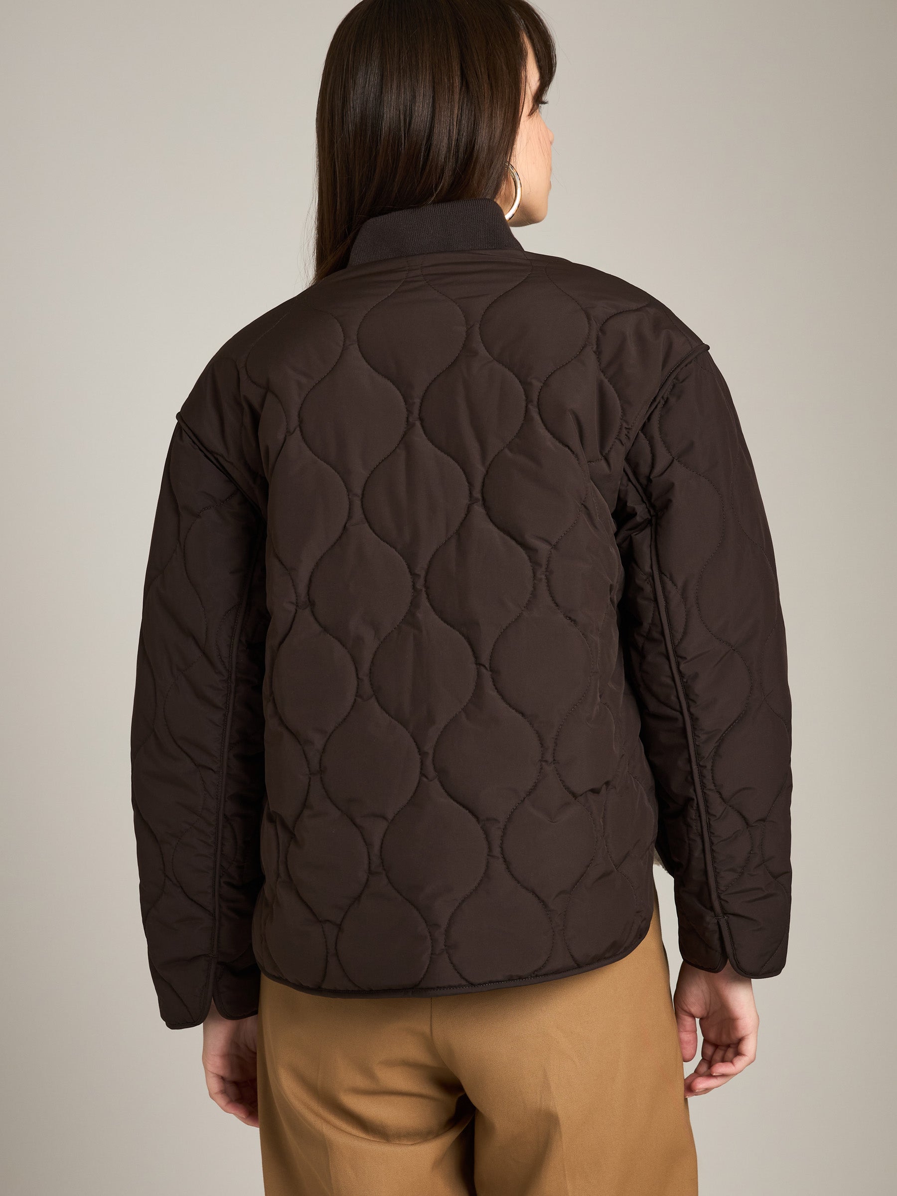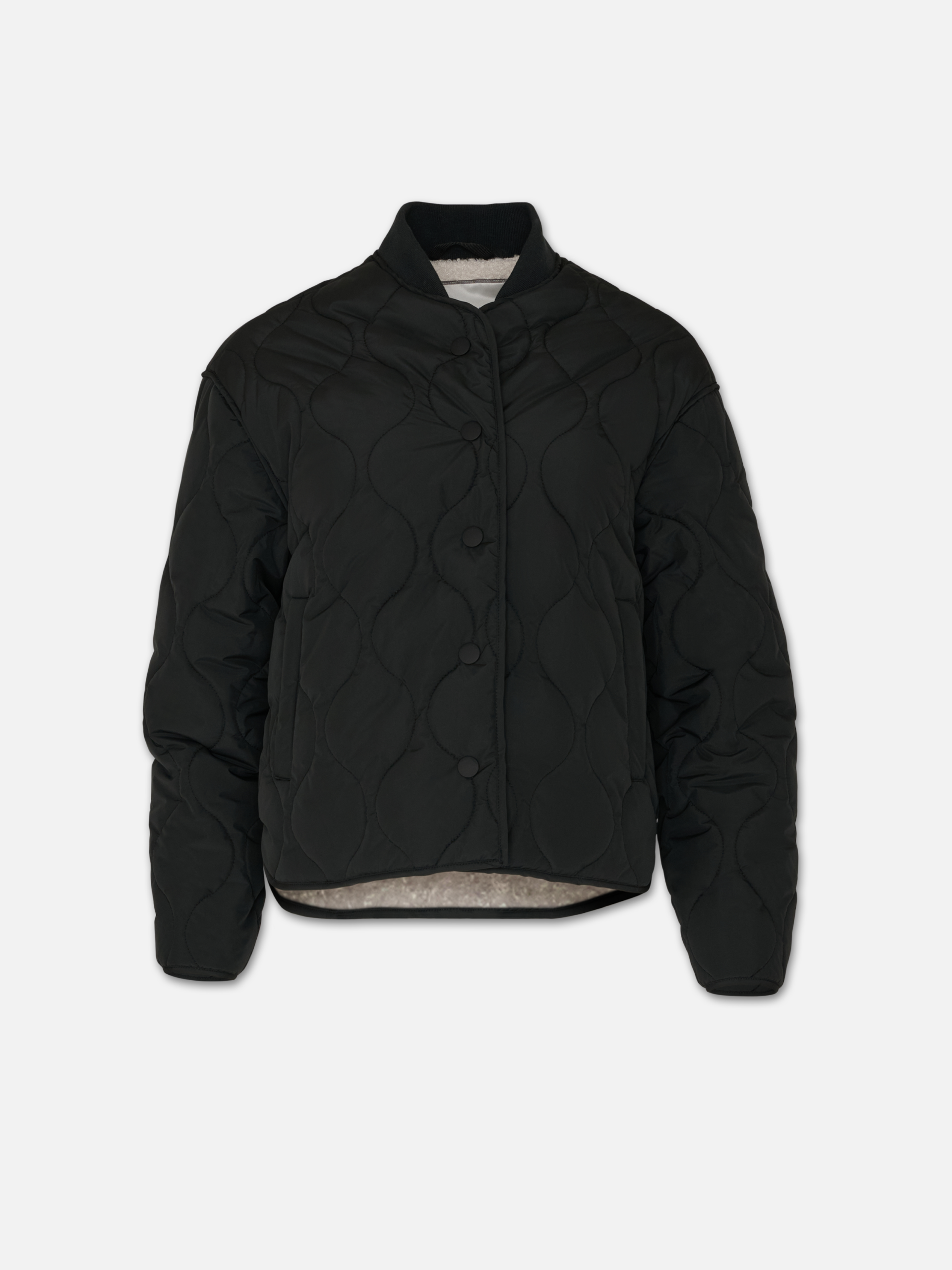 - Quilted bomber jacket with teddy sherpa lining